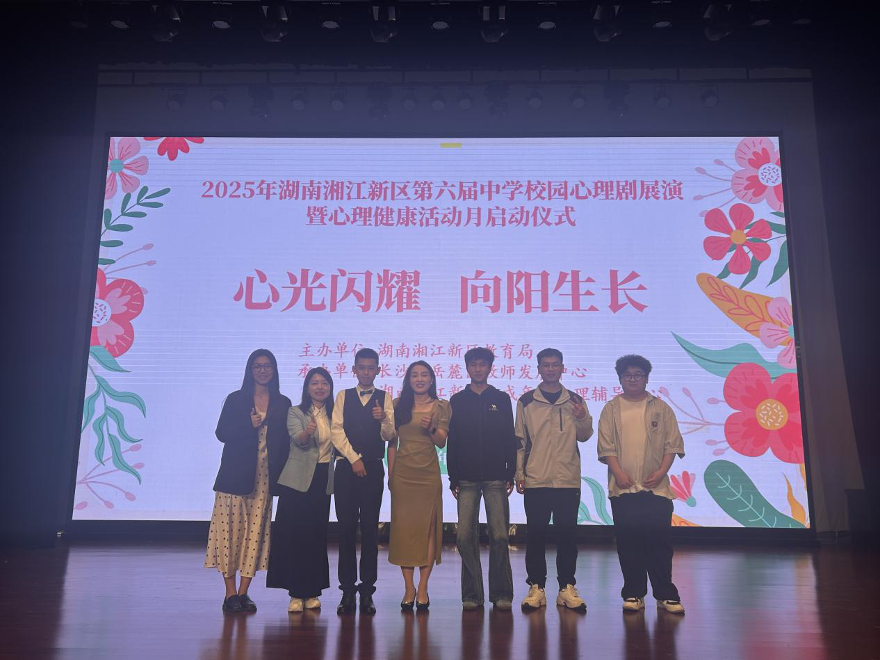 4月23日,湘江新区第六届中学校园心理剧展演暨心理健康活动月启动仪式在西雅中学举行。作为长沙市大中小学心育一体化建设牵头单位,省高校心理健康教育创新中心王小凤、赵云亨两位教师带领学生观摩团受邀参与,与全区 600 余名心理教育工作者、学生代表共研青少年心理健康教育实践路径。