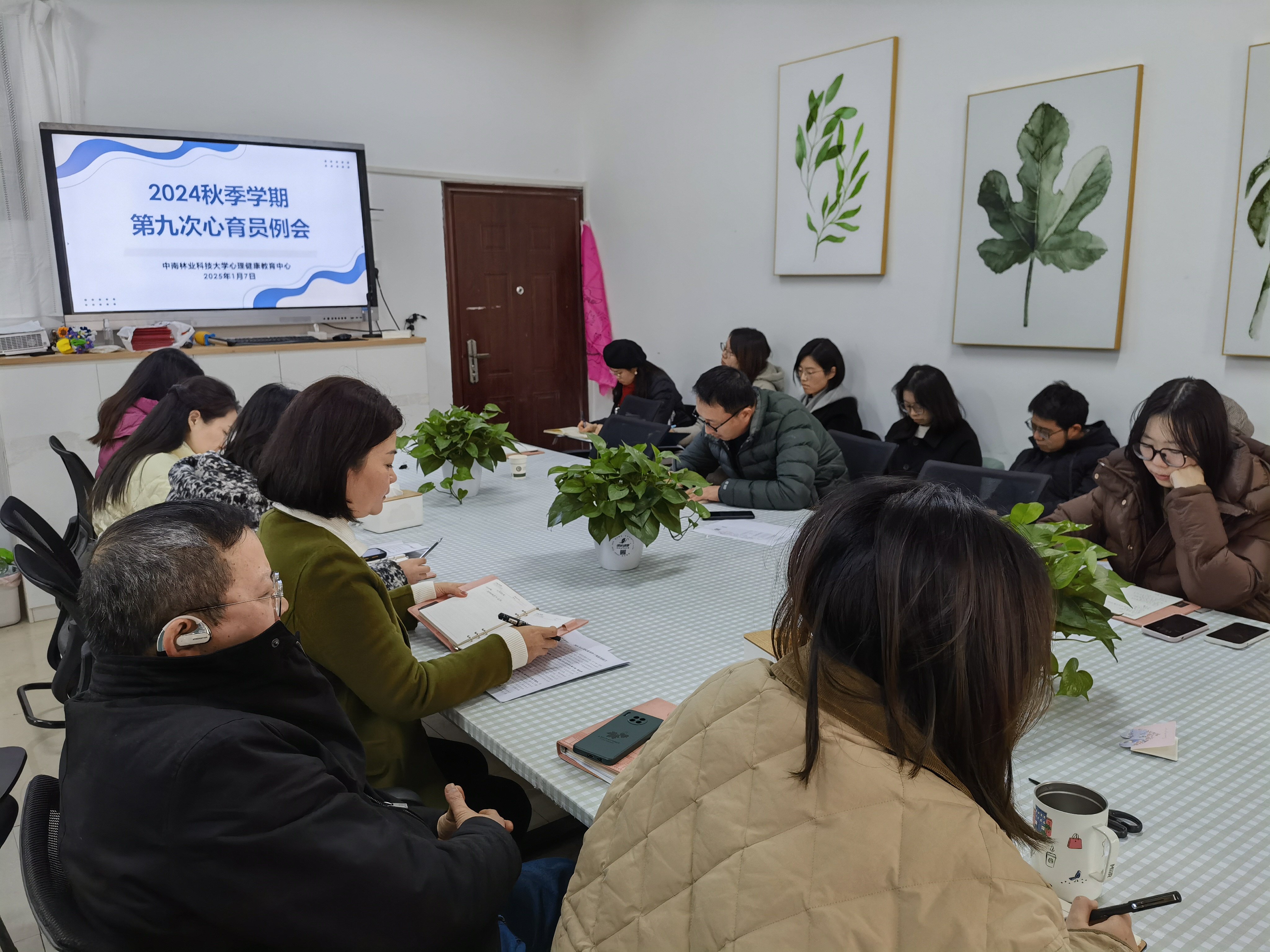 2025年1月7日上午,本学期第九次心育员例会在德润楼607举行,心理健康教育中心全体教师以及各学院心育员参加会议。