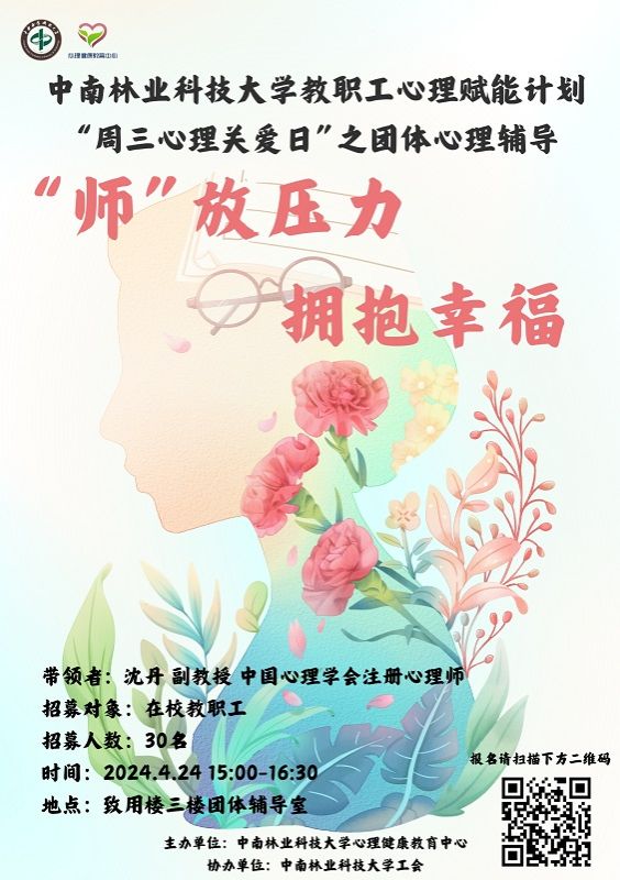 “不管你来自哪里,我们都有共同的名字——中南林人”。未来心理健康教育中心会继续开展形式多样的教职工“周三心理关爱日”活动,为老师们带去积极的心理能量,帮助他们以更好更新的精神状态面对工作、家庭和生活。