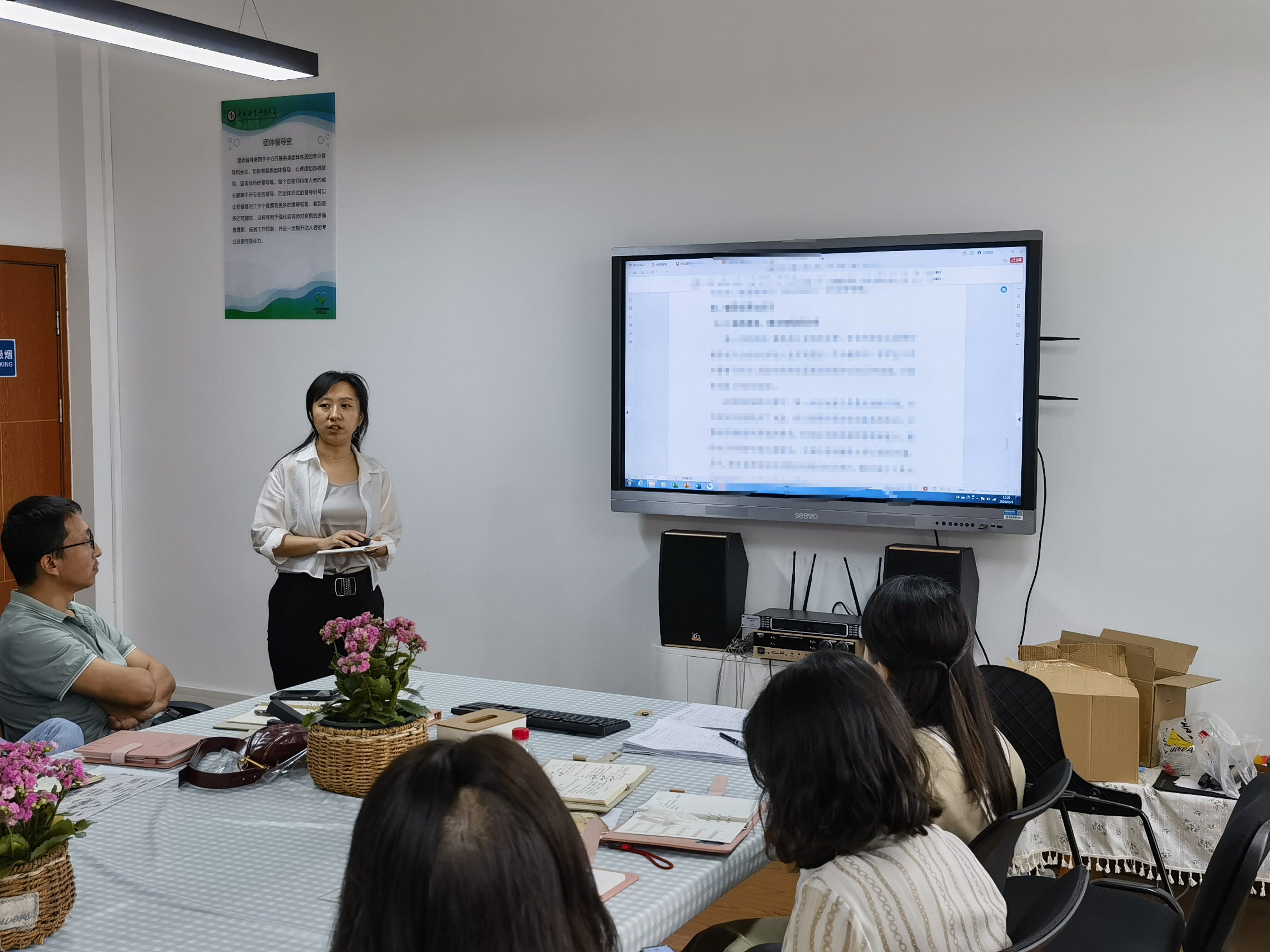 5月21日上午,本学期第七次心育员例会暨成长辅导案例研讨会在致用楼团体督导室举行,此次会议由心理健康教育中心主任袁红梅主持,心理健康教育中心全体教师以及各学院心育员共同参与。