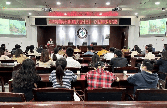 5月10日学生工作部在学校崇德楼四楼四会议室组织开展了2023年辅导员素质能力提升——心理健康教育专题培训。培训会由学生工作部副部长洪晶波主持,学生工作部心理中心袁红梅主任和罗伏生老师两位老师主讲,2018以来新入职的近60名辅导员参会。