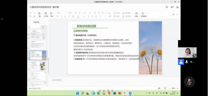 为了进一步提高线上心理咨询师的专业能力,更好地开展日后的工作,为同学们提供更好的心理咨询服务,2022年6月1日上午,心理中心组织了第二轮线上心理辅导师培训,为我校线上心理辅导师团队,以及中心对口协作的湖南女子学院、湖南涉外经济学院、湖南外国语职业学院的专兼职新手咨询师们开展了以“心理咨询中的初始访谈”为主题的培训。