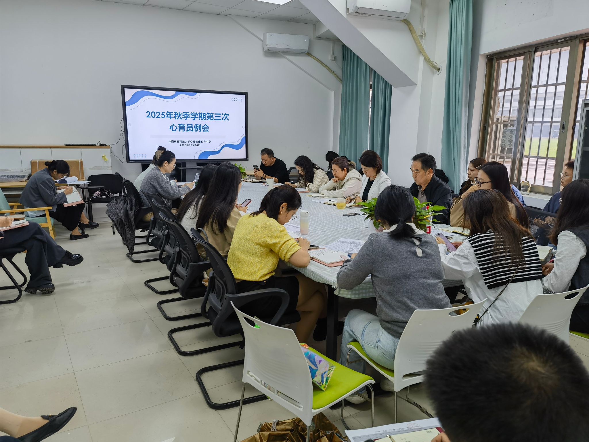 10月14日上午,心理健康教育中心在体育西看台320会议室召开2025年秋季学期第三次心育员工作例会。中心全体老师和各学院心育员参会。