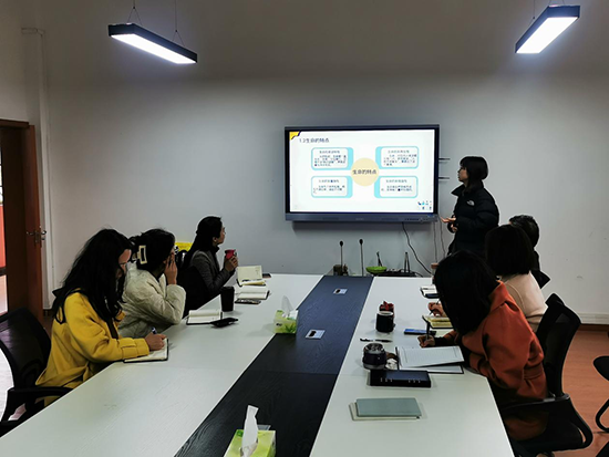 首先,两位新进教师就《大学生心理健康教育课程》中的挫折与生命教育主题进行了试讲,两位老师分别从生命的起源及意义、挫折的应对、大学生危机管理三个部分进行了说课。整个课程形式多样,活动丰富,紧密结合时事热点。
